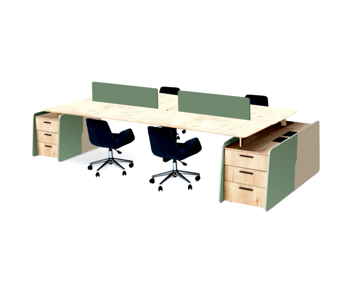 Modern ofislerin vazgeçilmezi haline gelen CRA Dörtlü Workstation, hem şık tasarımı hem de işlevselliği ile çalışma alanlarına yeni bir soluk getiriyor. Dörtlü yapısı sayesinde ekip çalışmasını teşvik ederken, her kullanıcıya özel ayrılmış kabinli bölümleri ile bireysel konsantrasyonu da destekler. Ergonomik yapısı, dayanıklı malzeme kullanımı ve modüler tasarımı sayesinde ofis düzeninizi hem estetik hem de verimli bir şekilde organize etmenize olanak tanır. Elektrik ve data altyapısına uygun tasarımı, kullanıcıların tüm ihtiyaçlarına pratik çözümler sunar.